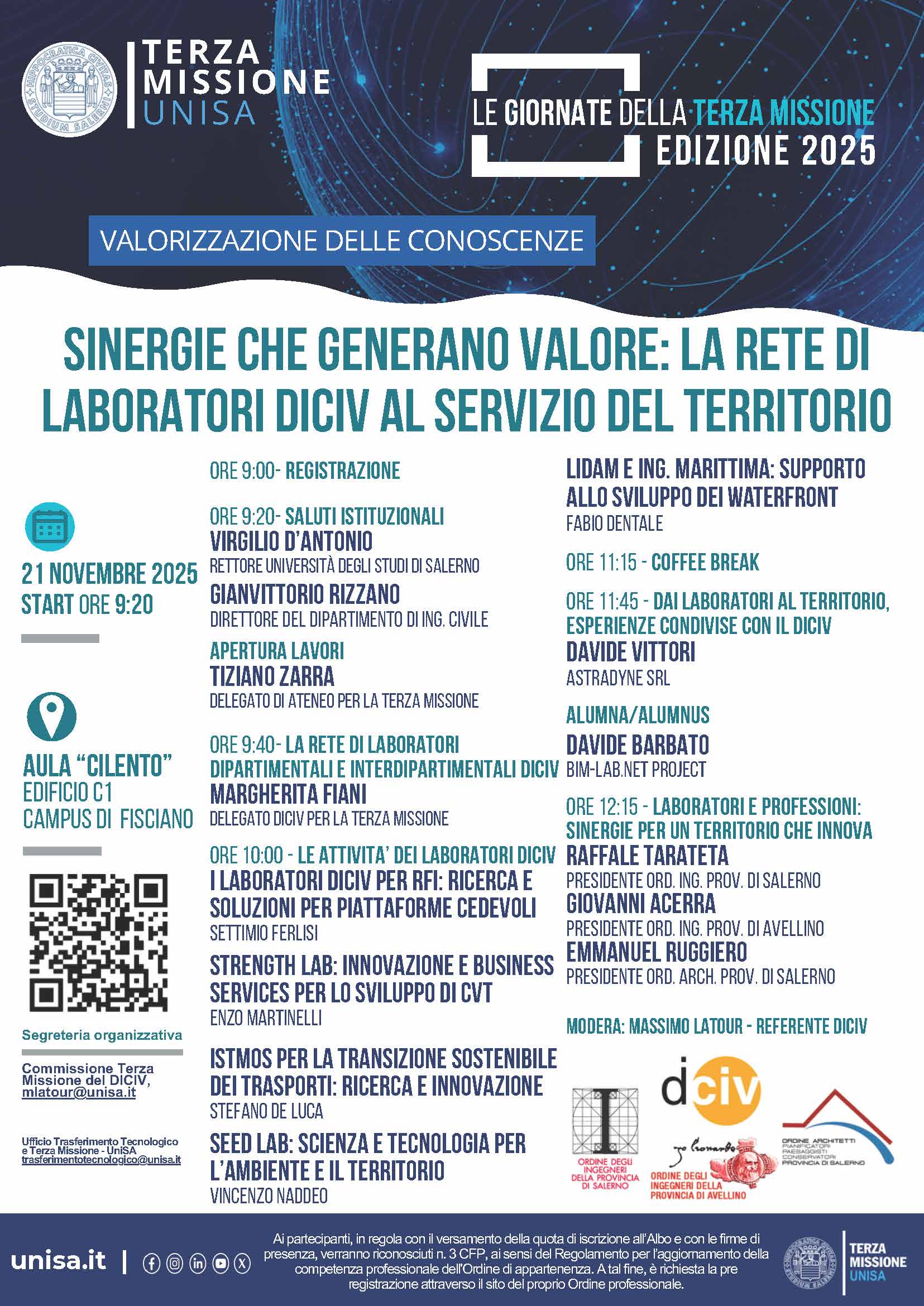 “Le Giornate della Terza Missione – Edizione 2025” Titolo della giornata: Sinergie che generano valore: la rete di laboratori DICIV al servizio del territorio
