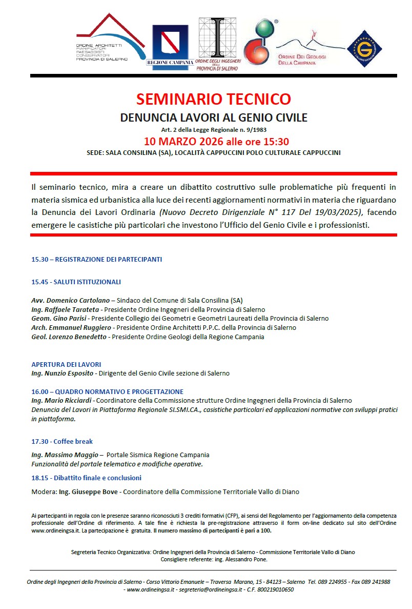 SEMINARIO TECNICO DENUNCIA LAVORI AL GENIO CIVILE- Art. 2 della Legge Regionale n. 9/1983